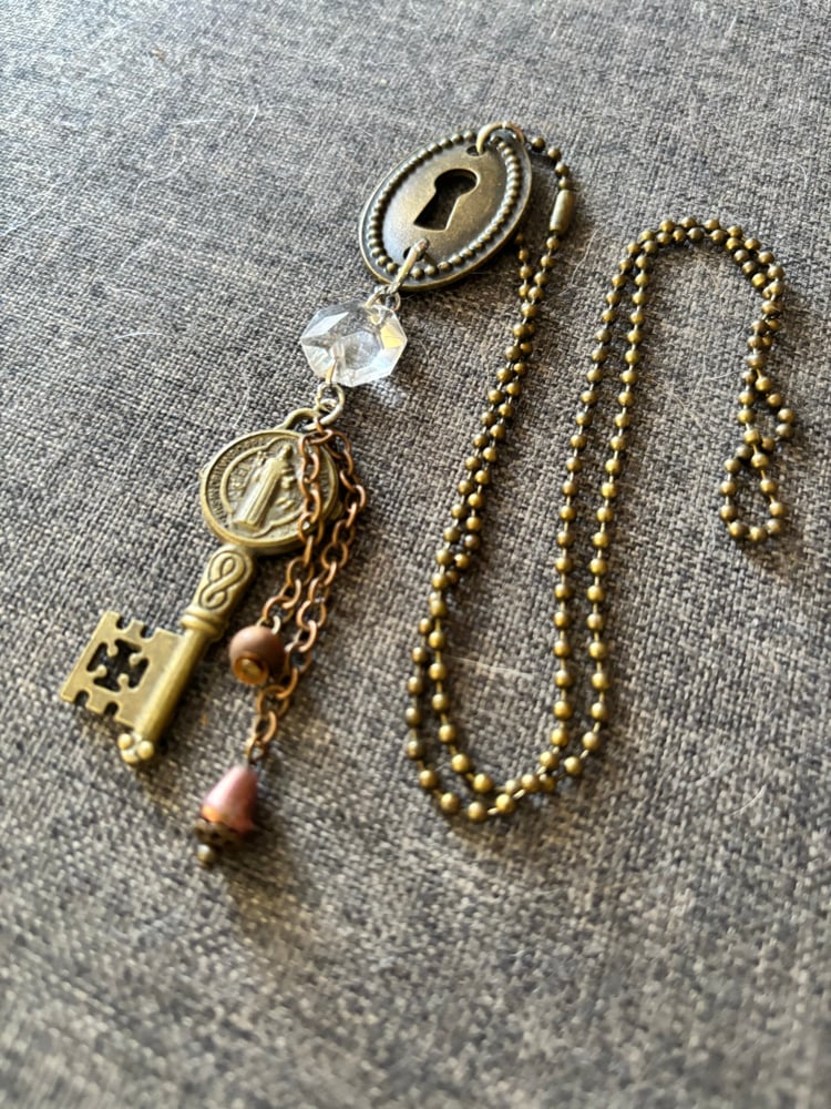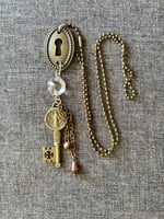 Steampunk repurposed necklace with key hole and religious key