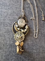 Steampunk repurposed necklace with watch face and rosary beads
